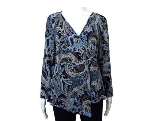 Blue Print V-Neck Wrap Blouse Size L quantity