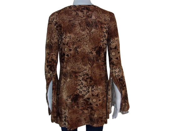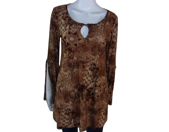 Brown Bell-Sleeve Keyhole Top Size L quantity