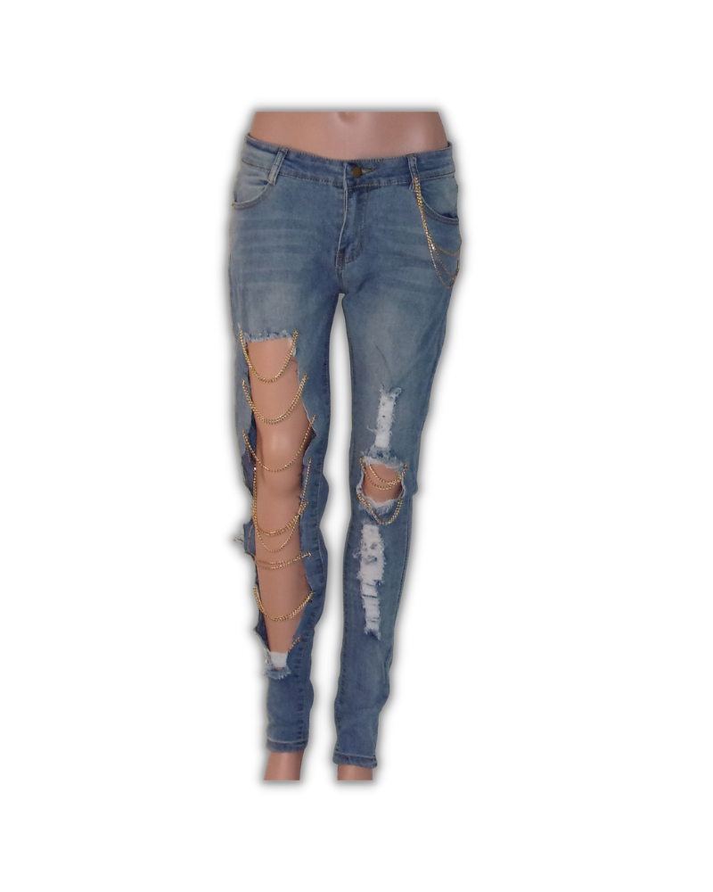 Ripped bling Jeans-Hole Chain Fashion Denim jeans