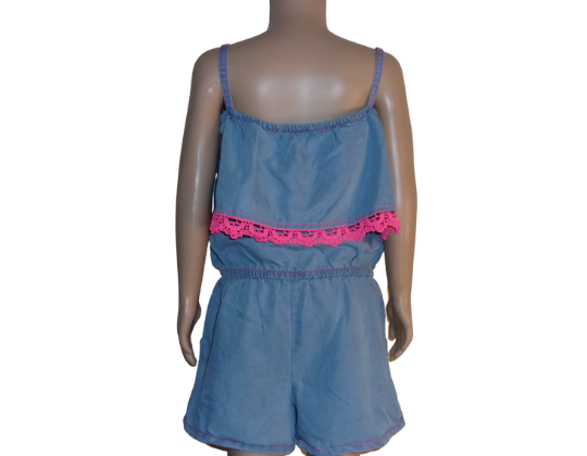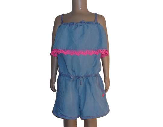 Denim Jumpsuit with Pink Laced Collar – Size 7