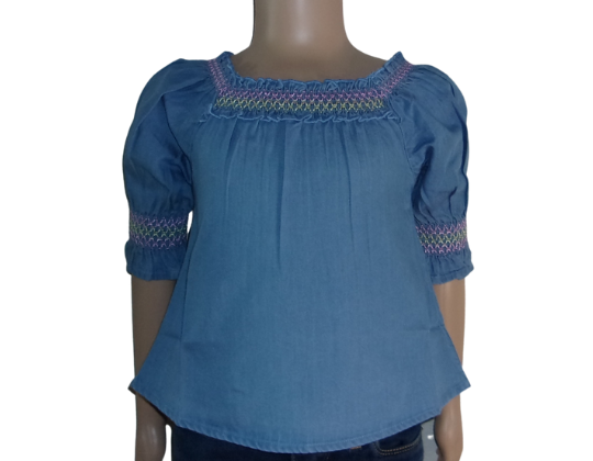 Denim Smocked Puff Sleeve Top Size 24 Months (New with Tags)
