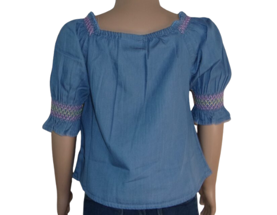Denim Smocked Puff Sleeve Top Size 24 Months (New with Tags) quantity