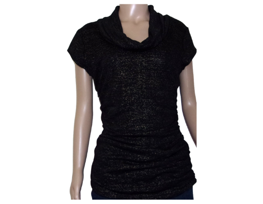 Gold and Black Side-Ruched Turtleneck Top Size M