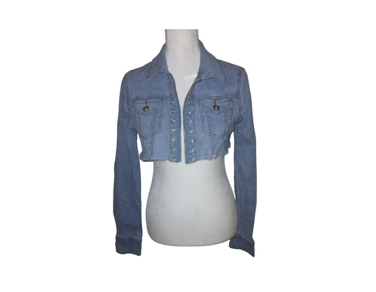 Jennifer Lopez, Frayed Cropped Denim Jacket, Size M