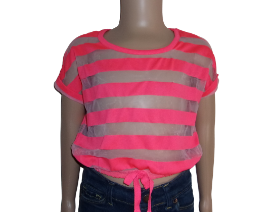 Pink Sheer-Stripe Front Tie Top Size S 6-6X quantity