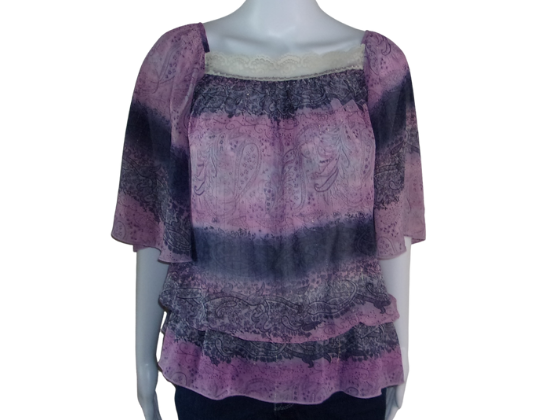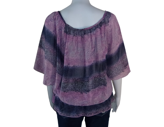Purple Sheer Lace-Front Blouse Size Large