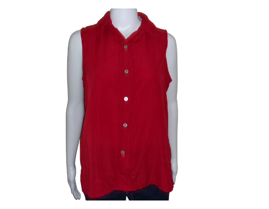 Red Sleeveless Front Button Shirt - Size Medium quantity