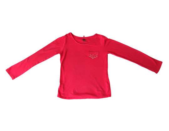 Total Girls, Long Sleeve Red Rhinestone Pocket T-Shirt, Size S-6-7