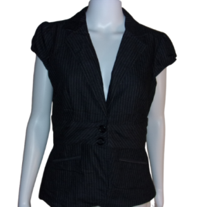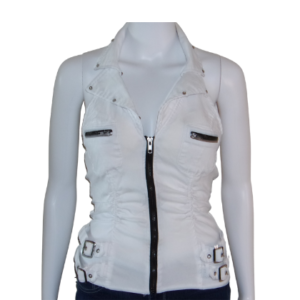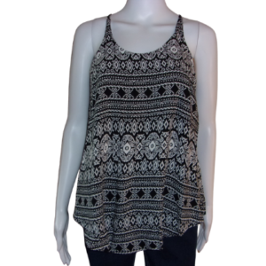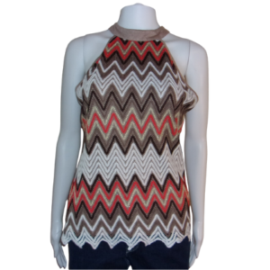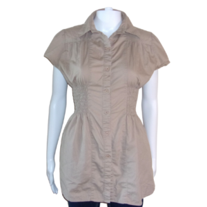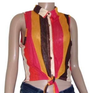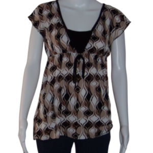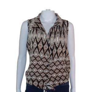 Brown and White Tie Front Button-Down Sleeveless Shirt Size L