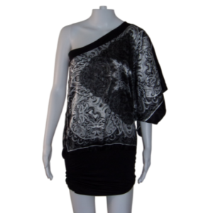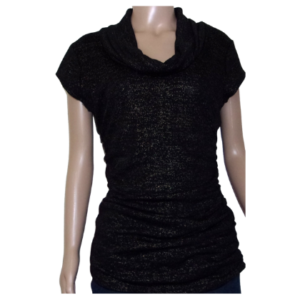 Gold and Black Side-Ruched Turtleneck Top Size M