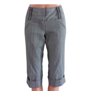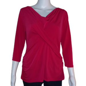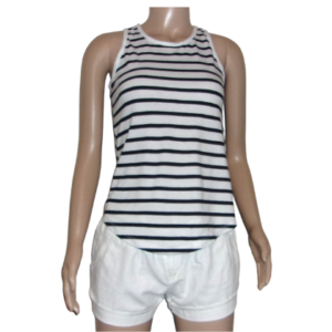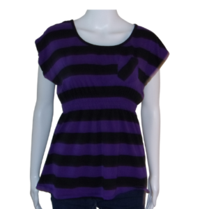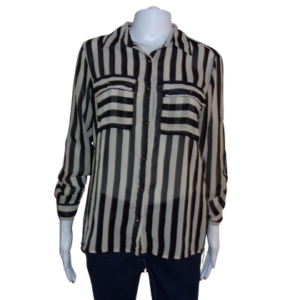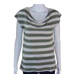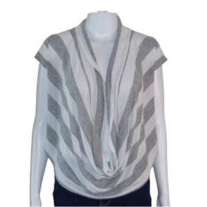 Gray and White Striped Draped-Neck Pullover Top Size L