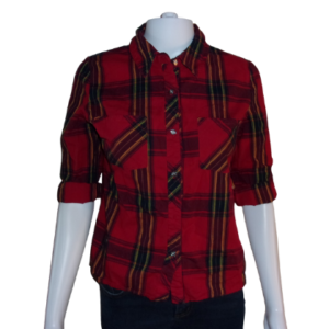 Red, White, and Black Plaid Button-Down Shirt Size Large