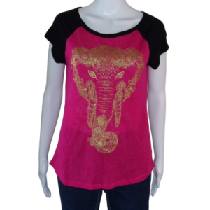 No Boundaries Pink And Black Elephant Print Top Size L 11-13