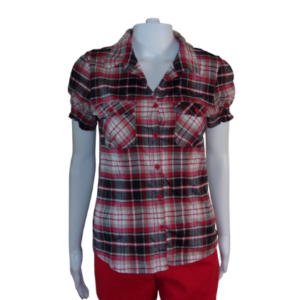 Just Polly Plaid Front Button Top, Size XL (New With Tags)