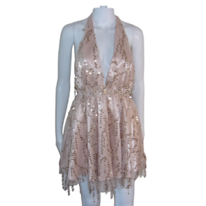 Rose Gold Back-Cutout Sequined Dress with Scarf Size (New with Tags)