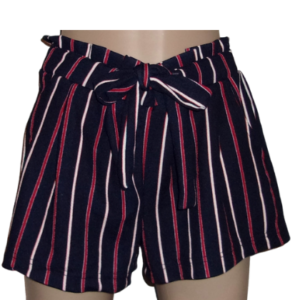 Juniors’ Smocked Waist Tie Front Red-White Striped Shorts Size M