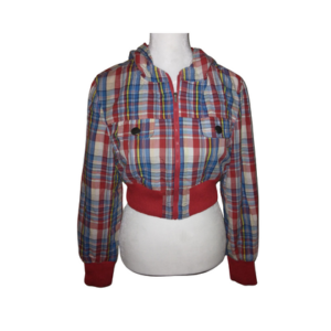 Juniors Red Stripped Front Zip Hoodie, Size L