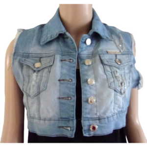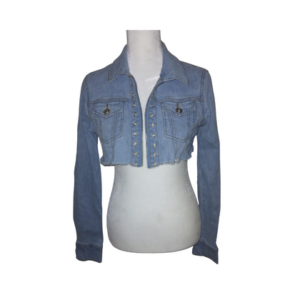 Jennifer Lopez, Frayed Cropped Denim Jacket, Size M